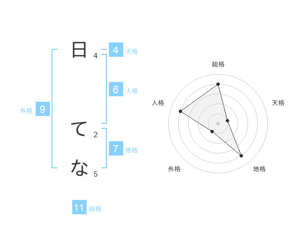 日 てなさんの総格は11画の4点!