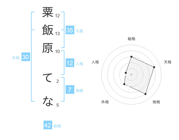 粟飯原 てなさんを姓名の画数から五運を鑑定