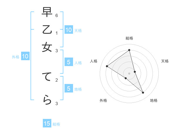 早乙女 てらさんを姓名の画数から五運を鑑定