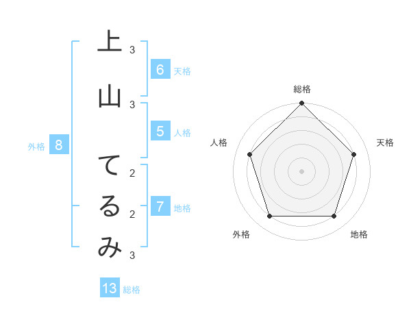 上山 てるみさんの総格は13画の5点!