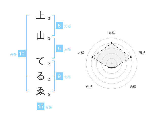 上山 てるゑさんを姓名の画数から五運を鑑定