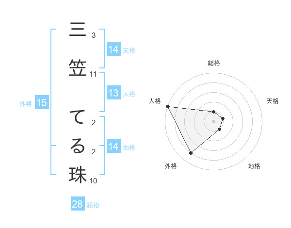 三笠 てる珠さんの天格は14画の1点!