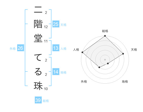 二階堂 てる珠さんの天格は25画の4点!