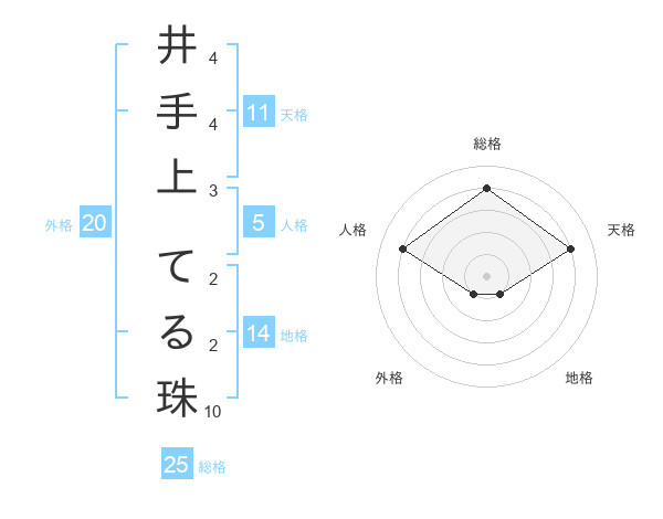 井手上 てる珠さんの総格は25画の4点!