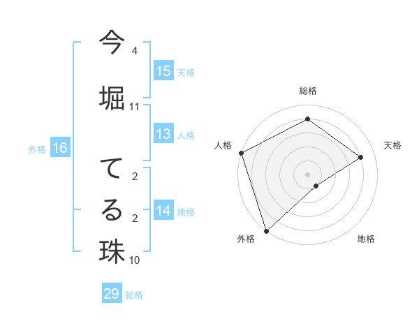 今堀 てる珠さんを姓名の画数から五運を鑑定