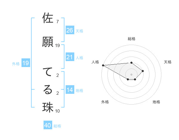 佐願 てる珠さんを姓名の画数から五運を鑑定