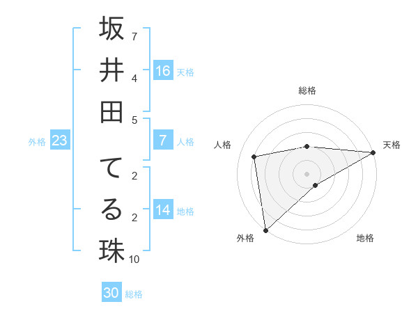 坂井田 てる珠さんの外格は23画の5点!