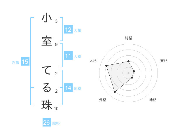 小室 てる珠さんの総格は26画の2点!