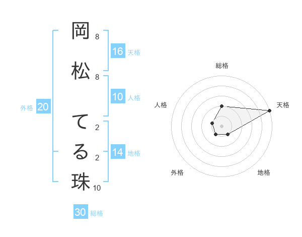 岡松 てる珠さんの天格は16画の5点!