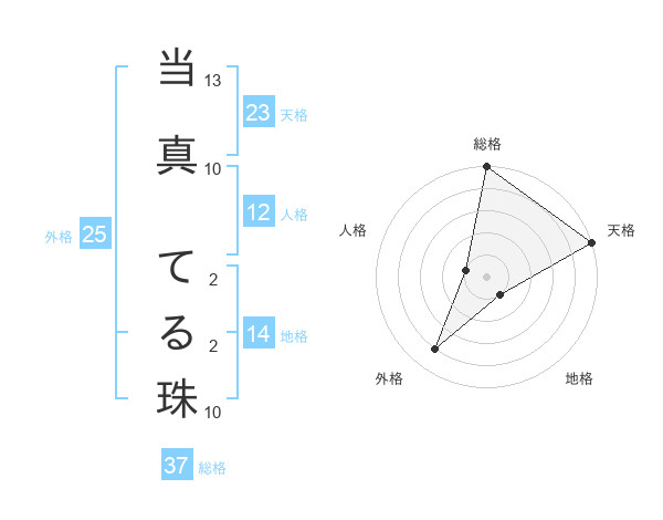 当真 てる珠さんを姓名の画数から五運を鑑定