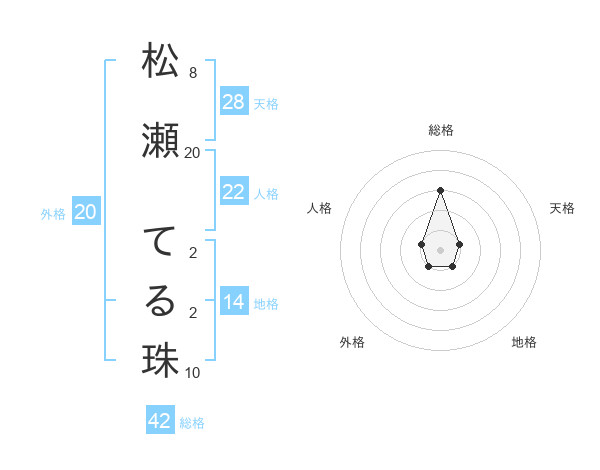 松瀬 てる珠さんを姓名の画数から五運を鑑定