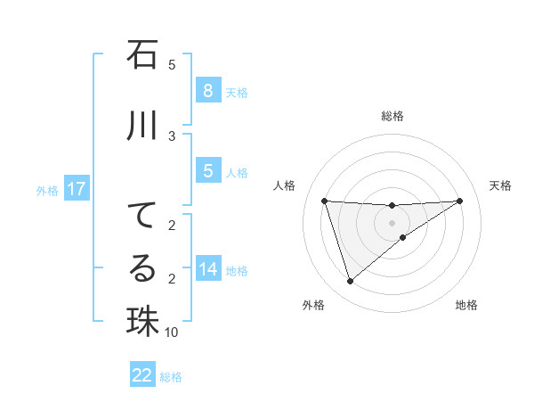 石川 てる珠さんを姓名の画数から五運を鑑定