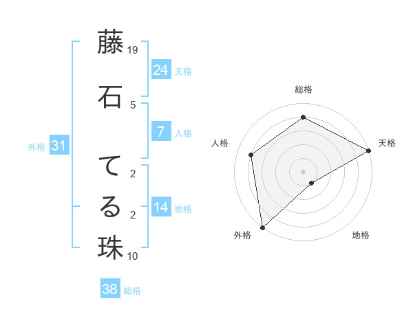 藤石 てる珠さんを姓名の画数から五運を鑑定