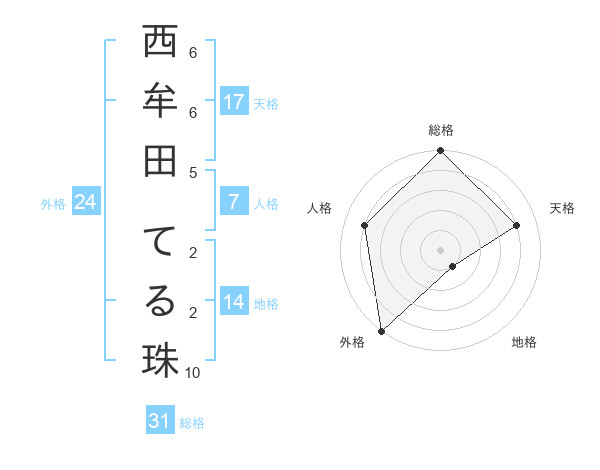 西牟田 てる珠さんを姓名の画数から五運を鑑定