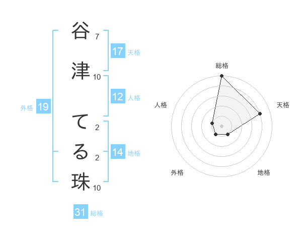 谷津 てる珠さんを姓名の画数から五運を鑑定