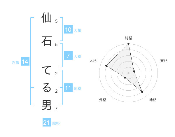 仙石 てる男さんを姓名の画数から五運を鑑定