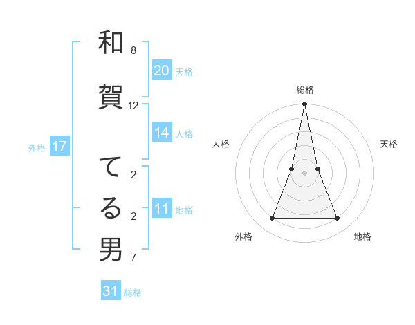和賀 てる男さんを姓名の画数から五運を鑑定