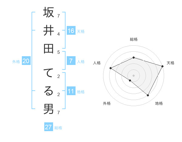 坂井田 てる男さんの総格は27画の3点!