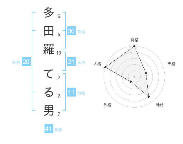 多田羅 てる男さんを姓名の画数から五運を鑑定