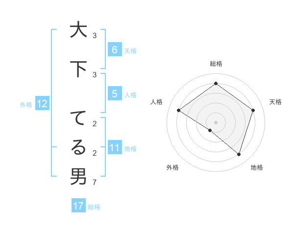 大下 てる男さんの総格は17画の4点!