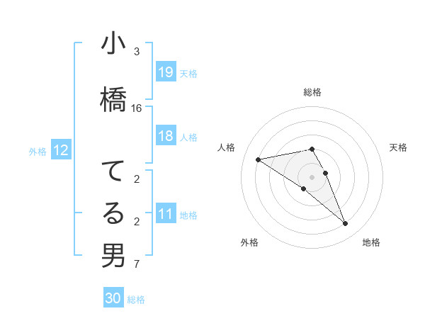 小橋 てる男さんを姓名の画数から五運を鑑定