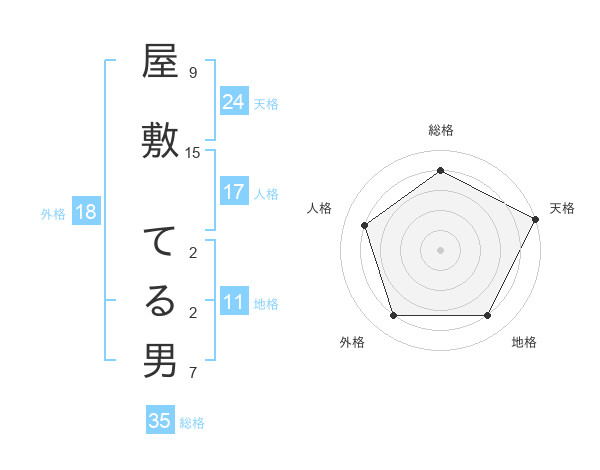 屋敷 てる男さんを姓名の画数から五運を鑑定