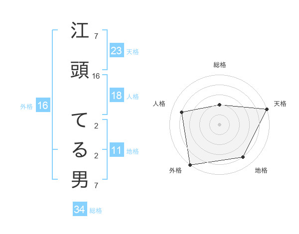 江頭 てる男さんを姓名の画数から五運を鑑定