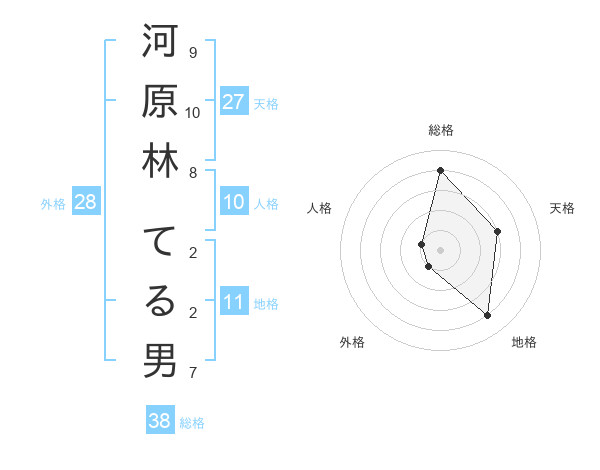 河原林 てる男さんの総格は38画の4点!