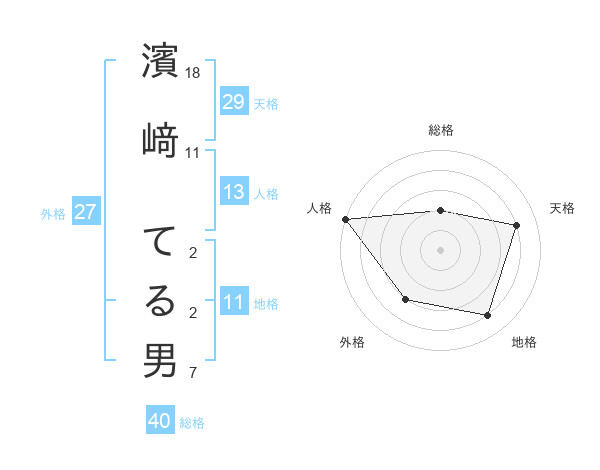 濱﨑 てる男さんを姓名の画数から五運を鑑定