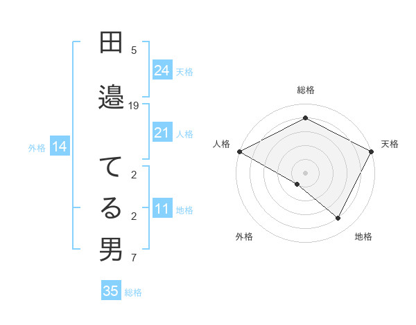 田邉 てる男さんの総格は35画の4点!