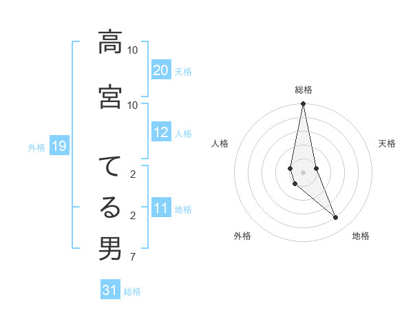 高宮 てる男さんを姓名の画数から五運を鑑定
