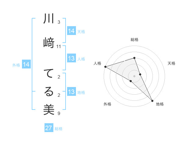 川﨑 てる美さんの総格は27画の3点!