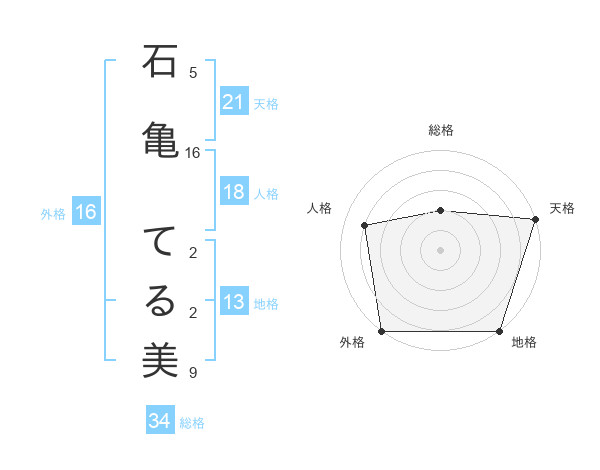 石亀 てる美さんを姓名の画数から五運を鑑定