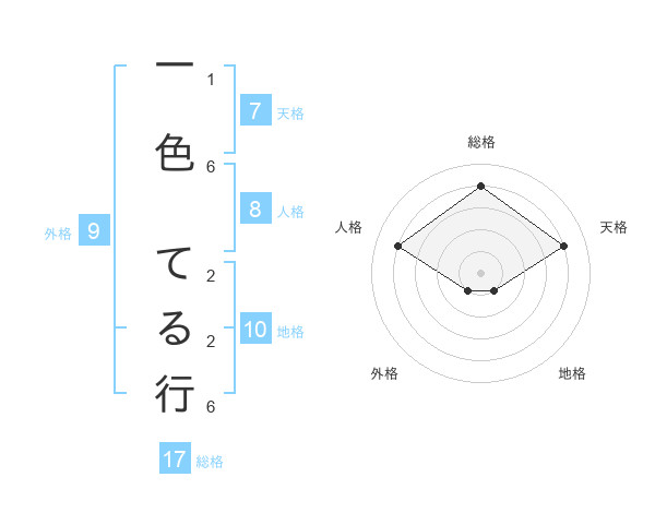 一色 てる行さんの総格は17画の4点!