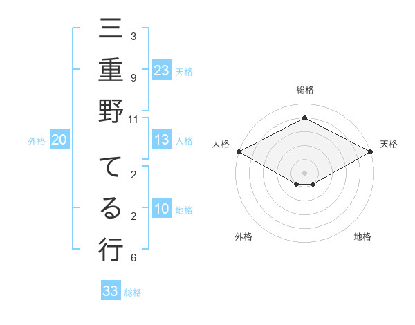 三重野 てる行さんを姓名の画数から五運を鑑定