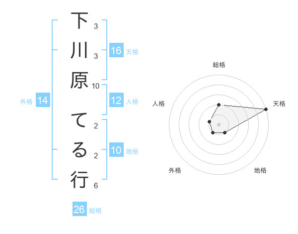 下川原 てる行さんを姓名の画数から五運を鑑定