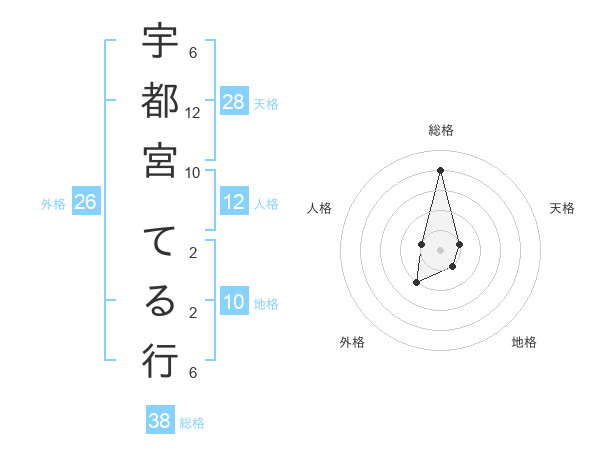 宇都宮 てる行さんを姓名の画数から五運を鑑定