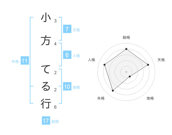 小方 てる行さんの総格は17画の4点!