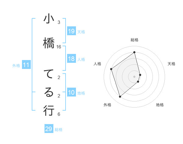 小橋 てる行さんを姓名の画数から五運を鑑定