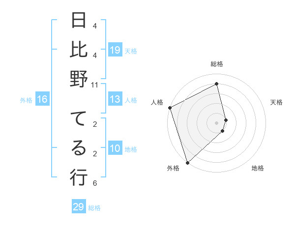 日比野 てる行さんを姓名の画数から五運を鑑定