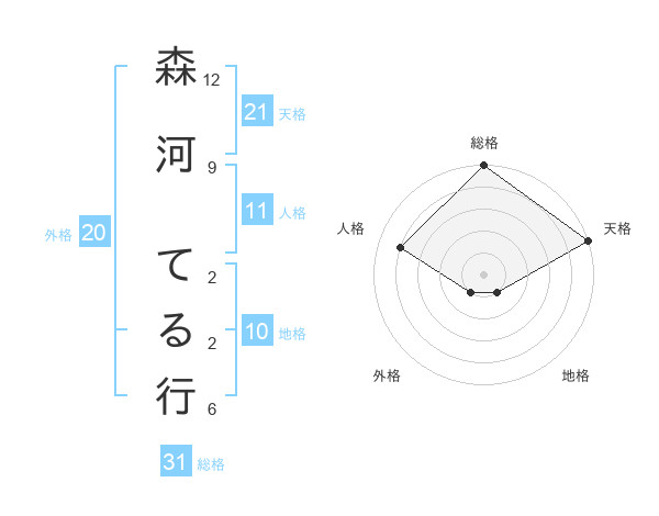 森河 てる行さんの総格は31画の5点