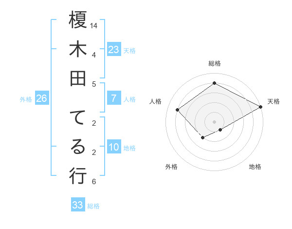 榎木田 てる行さんを姓名の画数から五運を鑑定