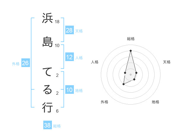 浜島 てる行さんを姓名の画数から五運を鑑定