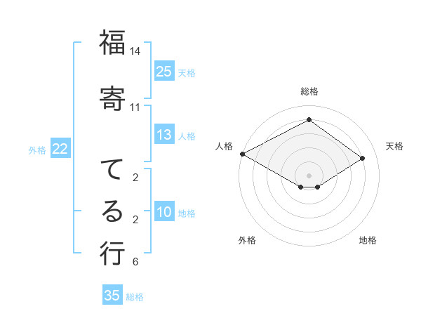 福寄 てる行さんを姓名の画数から五運を鑑定