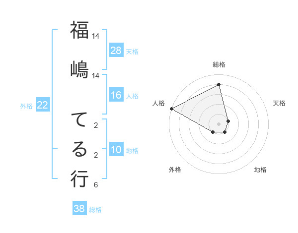 福嶋 てる行さんの総格は38画の4点!