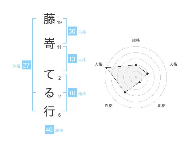 藤嵜 てる行さんを姓名の画数から五運を鑑定