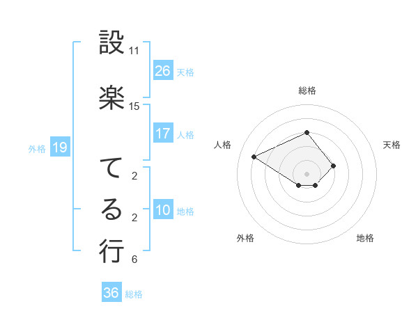 設楽 てる行さんの総格は36画の3点!