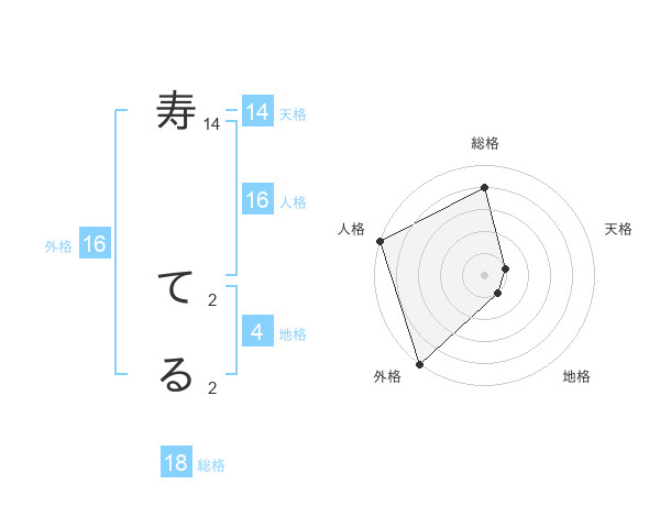 寿 てるさんの総格は18画の4点!