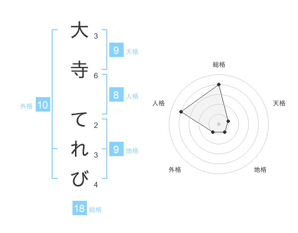 大寺 てれびさんの総格は18画の4点!