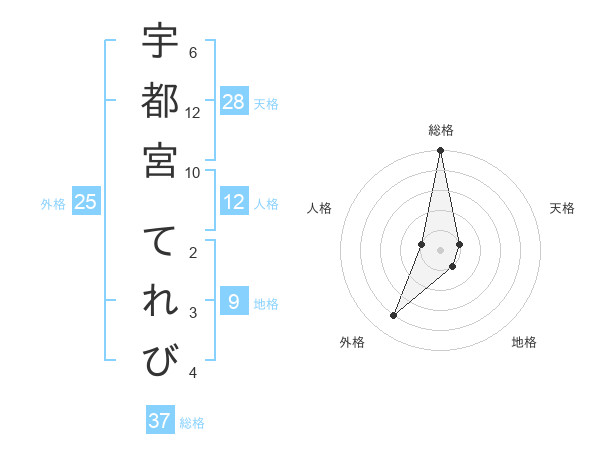 宇都宮 てれびさんを姓名の画数から五運を鑑定